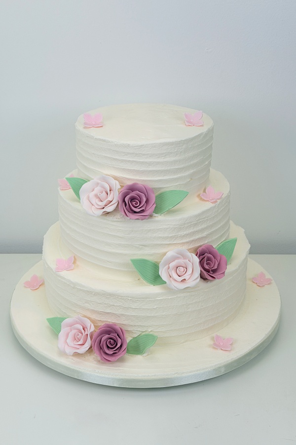 Pink Roses and Hydrangeas Wedding Cake No.W379
