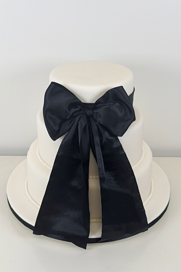 Stripes and Bow in Ivory Wedding Cake No.W237